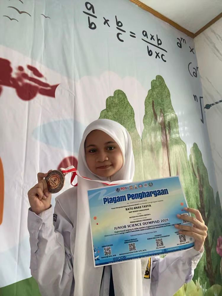 Kompetisi yang digelar pada 14 September 2025 ini mempertemukan ratusan pelajar berprestasi dari berbagai sekolah di Sulawesi Selatan. Dalam persaingan yang ketat itu, Ratu Anas Tasya berhasil menunjukkan kemampuan luar biasa dalam bidang matematika dan membuktikan bahwa semangat belajar dan kerja keras tidak pernah sia-sia.