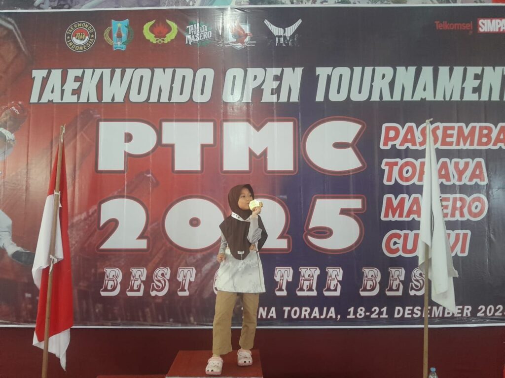 -SDIT Ma’arif Makassar, Santri SDIT Ma’arif Dafina Alfatunissa Rahman, berhasil meraih gelar Juara I dalam ajang PTMC (nama lengkap jika ada) yang diselenggarakan di Toraja pada tahun 2025.