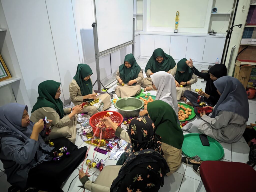 Pantauan di lapangan menunjukkan, para guru wanita yang akrab disapa “miss” tampak bersemangat menghias telur Maulid dengan berbagai warna dan ornamen. Sementara itu, para ustaz fokus pada penataan dekorasi panggung utama serta persiapan teknis lainnya.