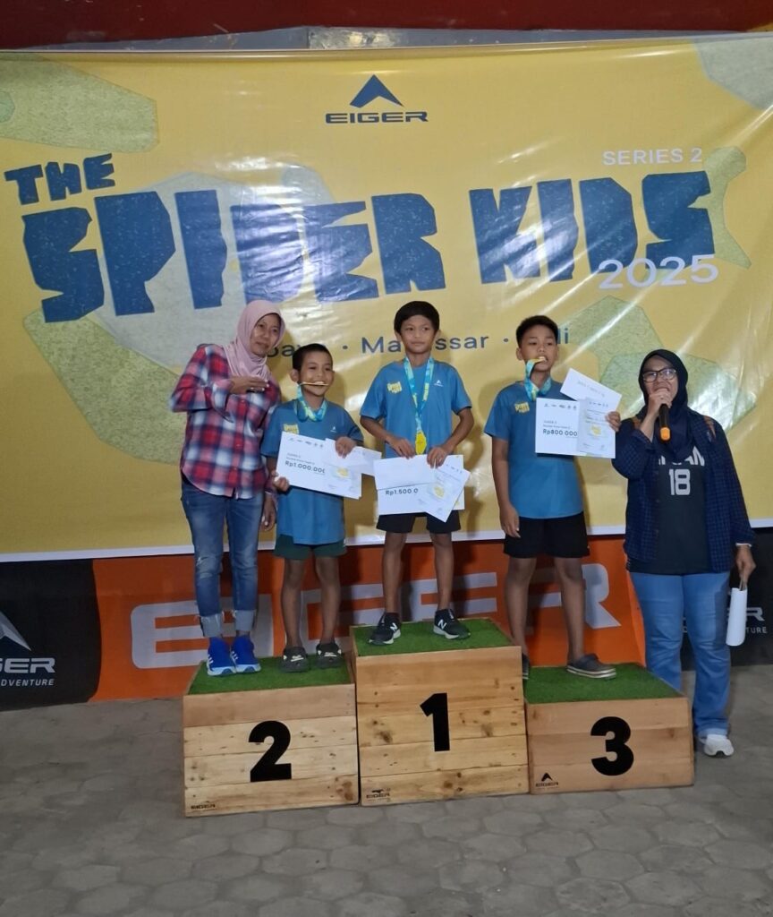 Makassar, 15 Oktober 2025 — Prestasi membanggakan kembali ditorehkan oleh salah satu santri SDIT Ma’arif Makassar. Muhammad Asyura Alghifari, berhasil meraih Juara 2 pada ajang bergengsi The Spider Kids 2025 (Series 2) Boulder Enduro yang digelar di EIGER Climbing Center Makassar, tingkat Sulawesi Selatan, kategori Boulder Youth D.