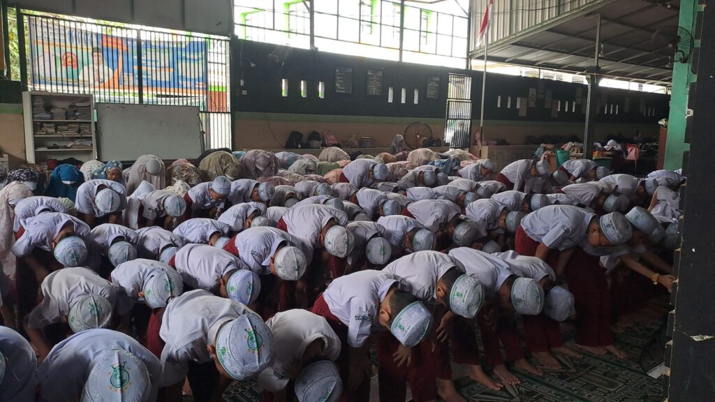 Santri mulai hari dengan sholat dhuha dan pembacaan Al-Qur’an sebelum memasuki sesi pembelajaran akademik pagi. Setelah jam pelajaran reguler, mereka mengikuti kegiatan pembinaan agama Madrasah Diniyah, serta pembelajaran tentang akhlak mulia sesuai ajaran Islam.