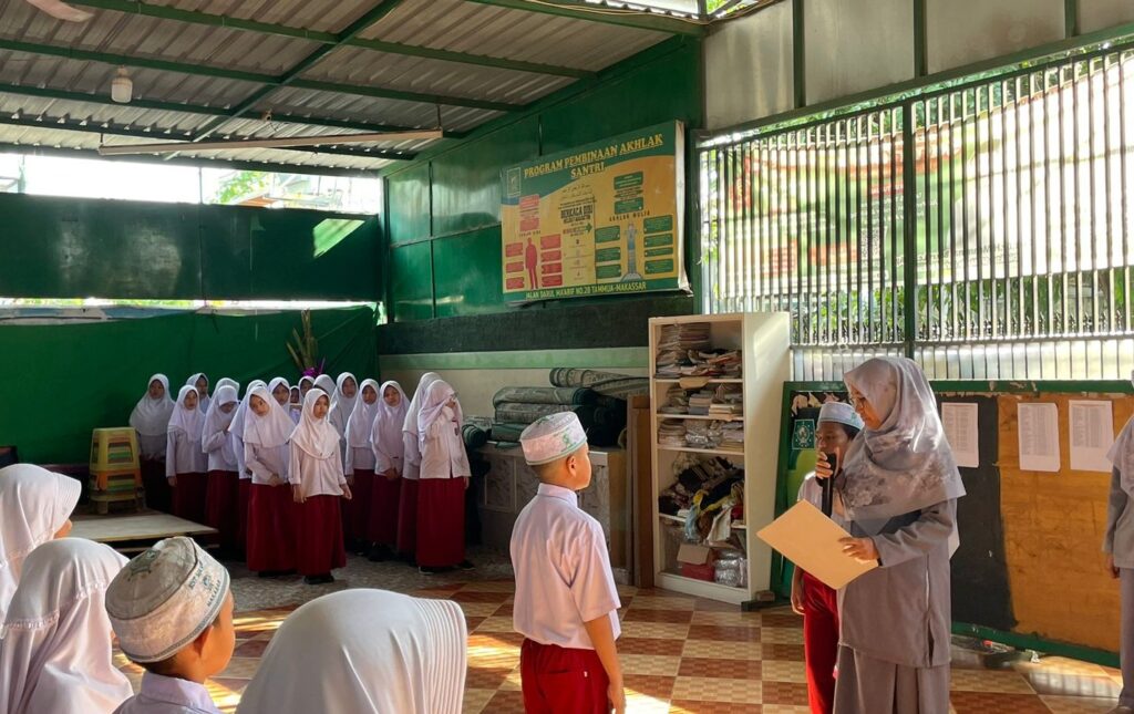 Senin, 6 Oktober 2025, suasana lapangan SDIT Ma’arif Makassar dipenuhi semangat saat santri-santriwati mengikuti upacara bendera. Yang istimewa, upacara kali ini dipimpin oleh Miss Nurul Muthmainnah, M.Pd., yang menyampaikan pesan sederhana namun bermakna: “Sekolah ini milik kita bersama, berarti harus kita jaga.”